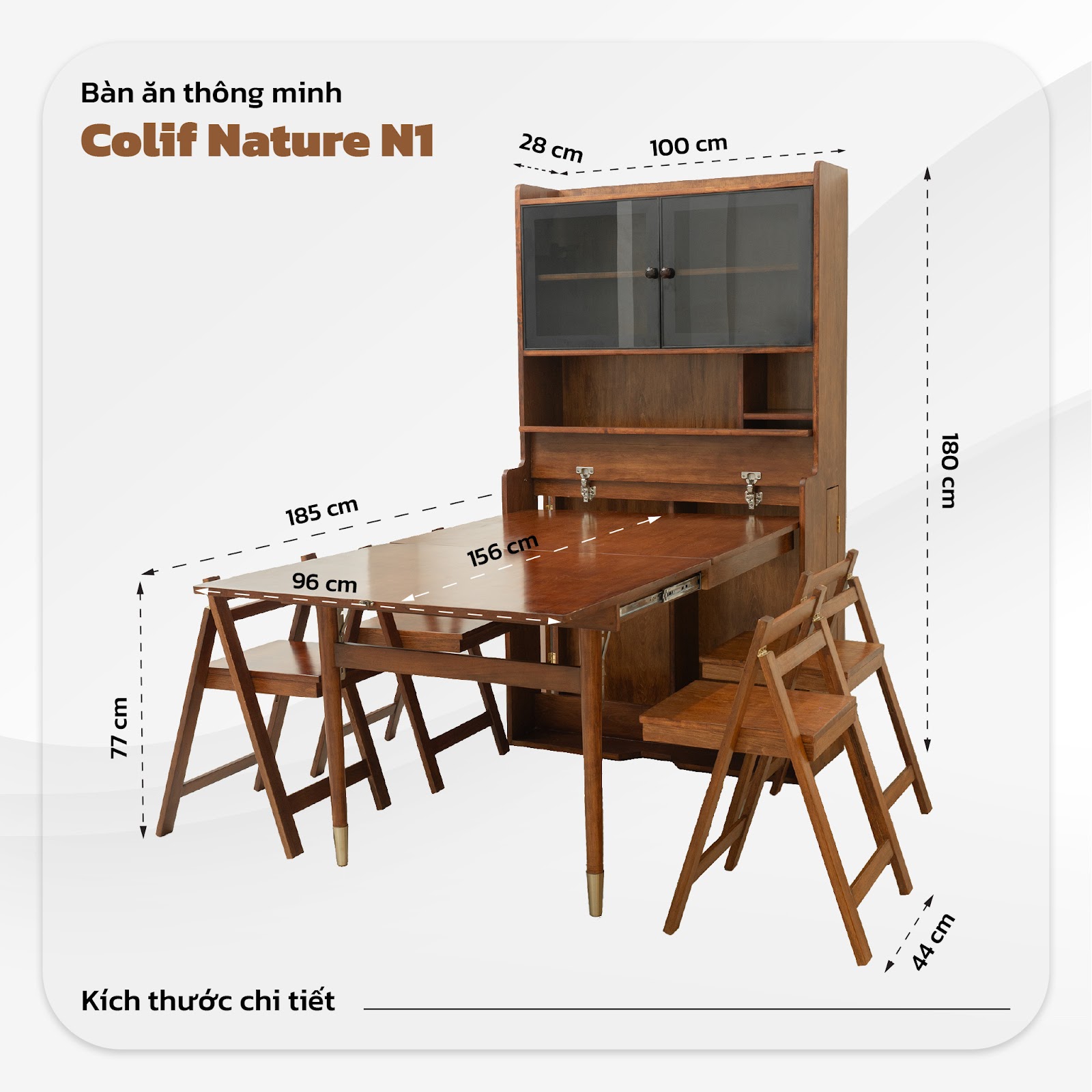 Sử dụng 100% gỗ tự nhiên, sản xuất hoàn toàn tại Việt Nam, bàn ăn đa năng Colif Nature N1 là siêu phẩm nội thất mà các tín đồ mê nội thất gỗ không nên bỏ qua. Cùng Colif tìm hiểu chi tiết hơn về bộ bàn ăn đa năng Colif Nature N1 ngay bên dưới.