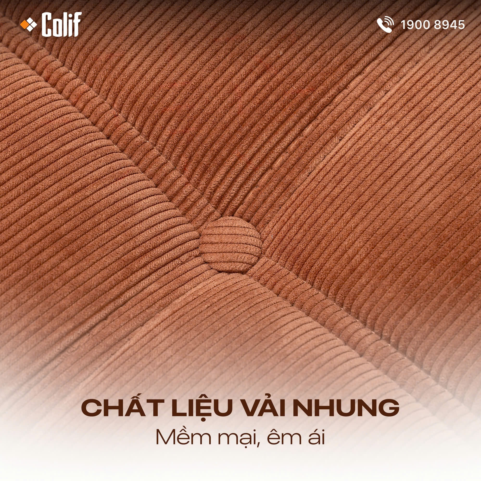 Colif Air được sử dụng chất liệu vải nhung cao cấp, mang lại cảm giác mềm mại và êm ái ngay từ lần chạm đầu tiên. Khi ngồi lên, bạn sẽ cảm nhận được sự nâng niu tuyệt tối, nhẹ nhàng, dễ chịu như được thư giải tỏa hoàn toàn sau một ngày làm việc cạn kiệt năng lượng.