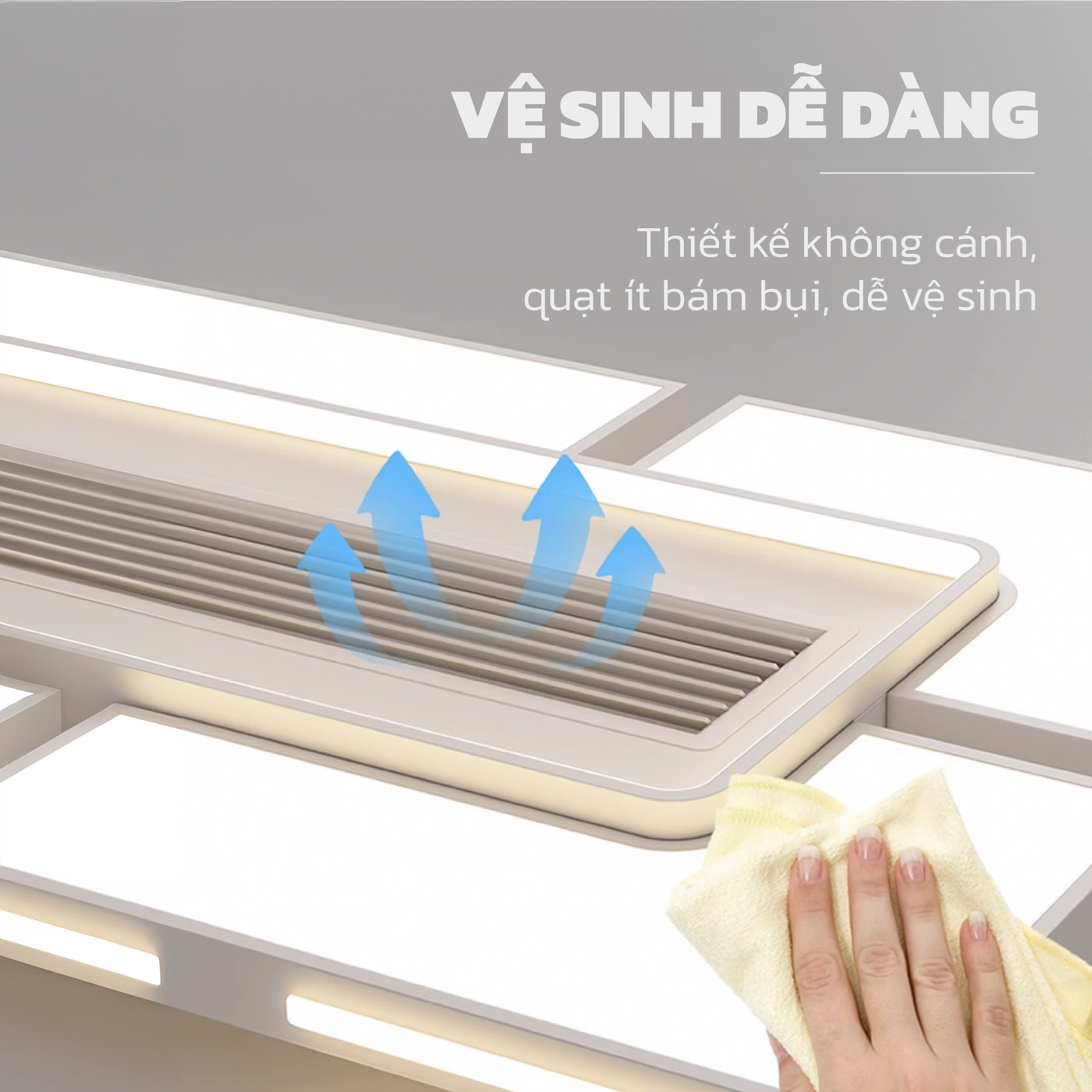Thiết kế không cánh, quạt ít bám bụi hoặc tóc như quạt truyền thống, chỉ cần lau chùi bề mặt sản phẩm hoặc dùng cọ lông nhỏ quét bụi.