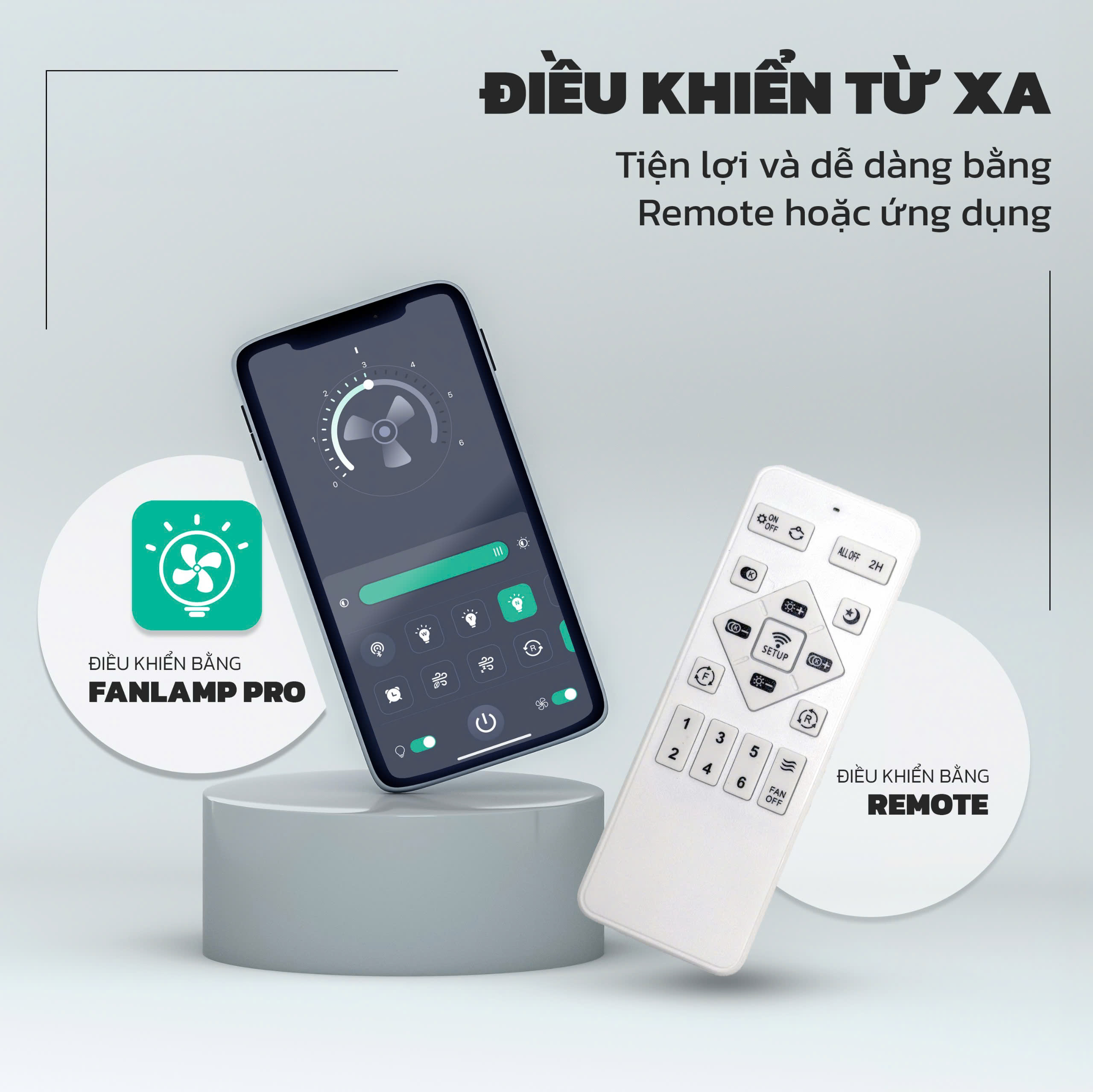 Điều khiển từ xa tiện lợi bằng remote hoặc ứng dụng điện thoại