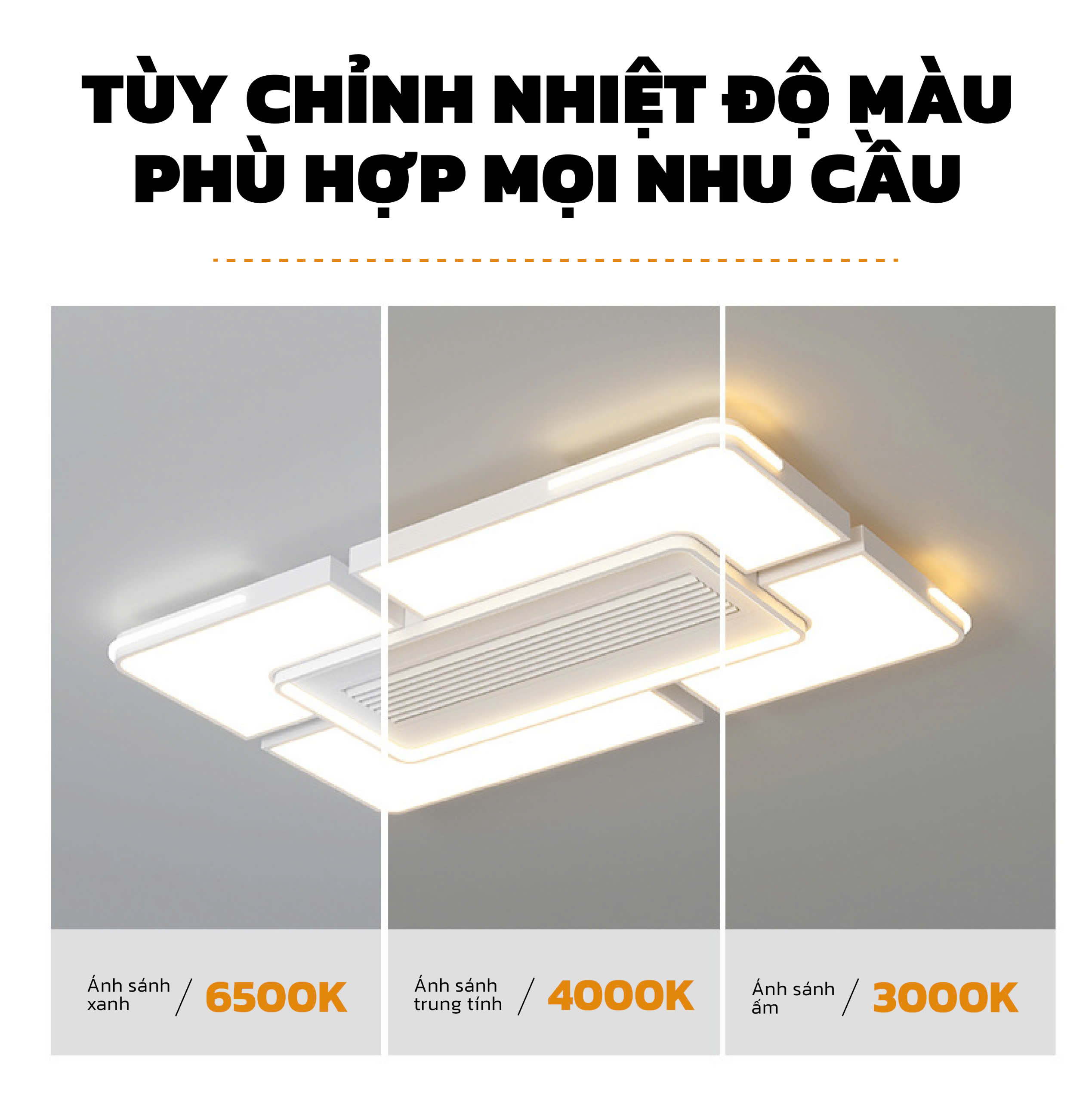 Đèn quạt trần Colif Light Air Ultra có khả năng tùy chỉnh nhiệt độ màu từ 3200k - 6500k, chuyển đổi màu sắc linh hoạt, phù hợp với mọi nhu cầu sử dụng như nghỉ ngơi, sinh hoạt hay làm việc.
