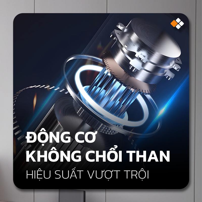 Động cơ được chế tạo từ đồng nguyên chất, hiệu suất vượt trội và độ bền cao. Đồng nguyên chất có khả năng dẫn điện vượt trội, giúp động cơ hoạt động mượt mà và ổn định. Đồng nguyên chất cũng giúp tản nhiệt tốt hơn, kéo dài tuổi thọ của động cơ và giảm nguy cơ quá nhiệt.