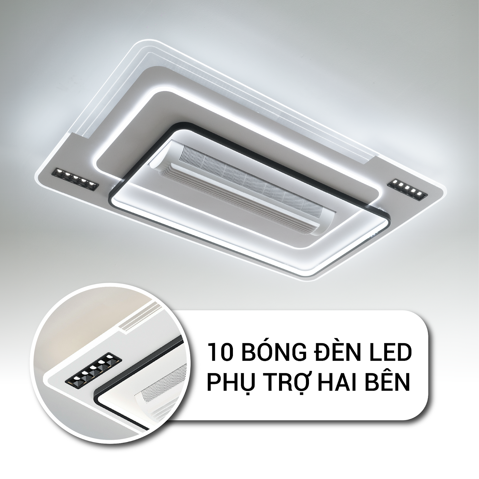 Đèn được trang bị thêm 10 bóng đèn LED phụ trợ hai bên, giúp không gian trở nên lung linh và rực rỡ hơn. Đây là một điểm nhấn độc đáo, mang lại hiệu ứng ánh sáng tuyệt vời, tạo nên bầu không khí ấm áp và sang trọng cho không gian nội thất của bạn.