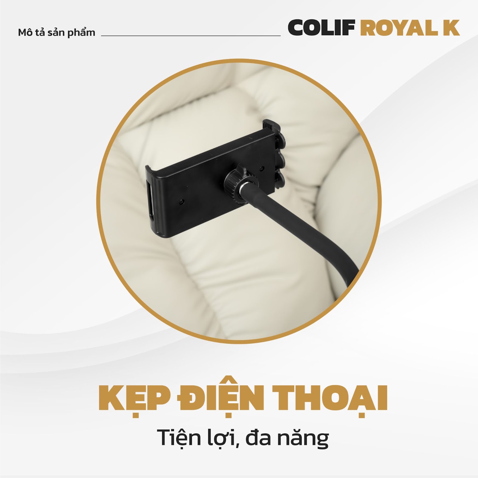 Ghế lười Colif Royal K được trang bị kẹp điện thoại và iPad tiện lợi