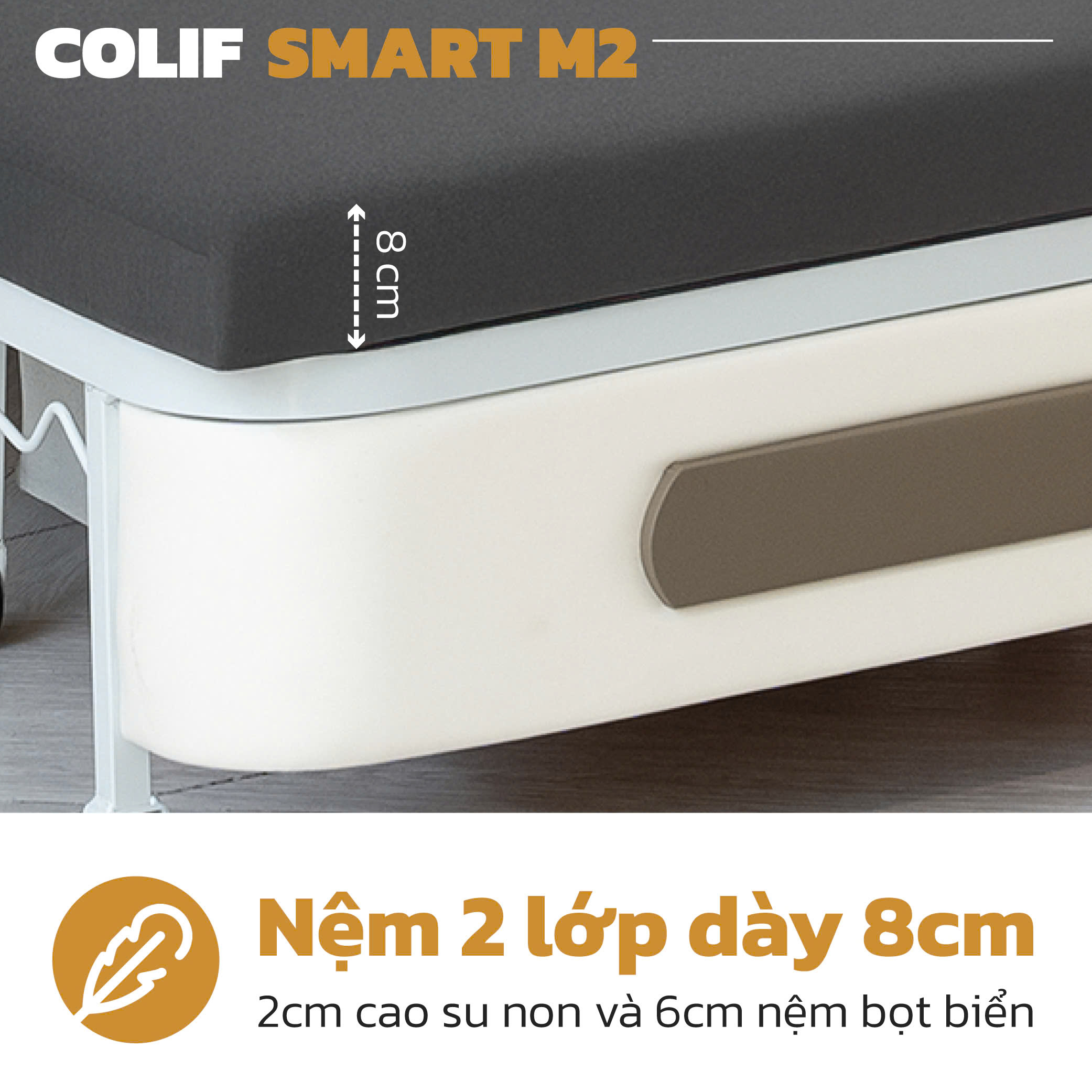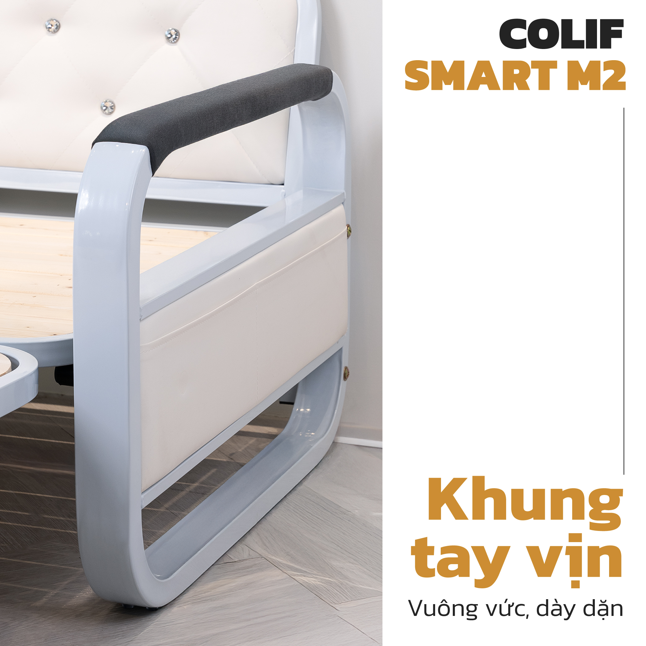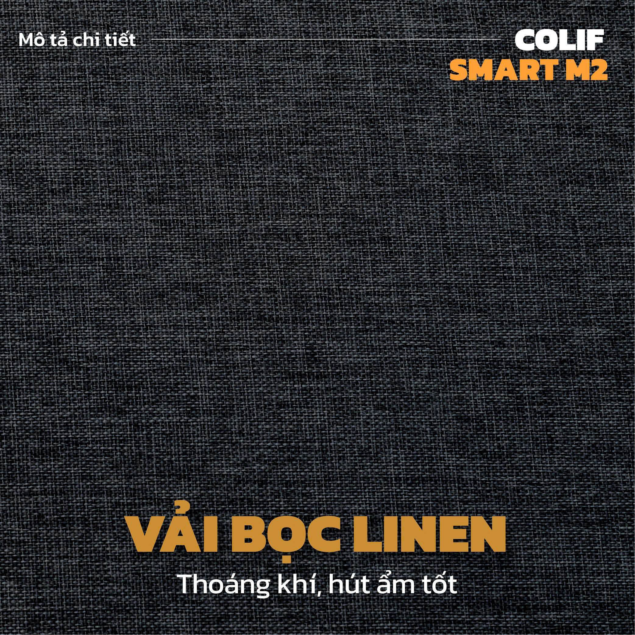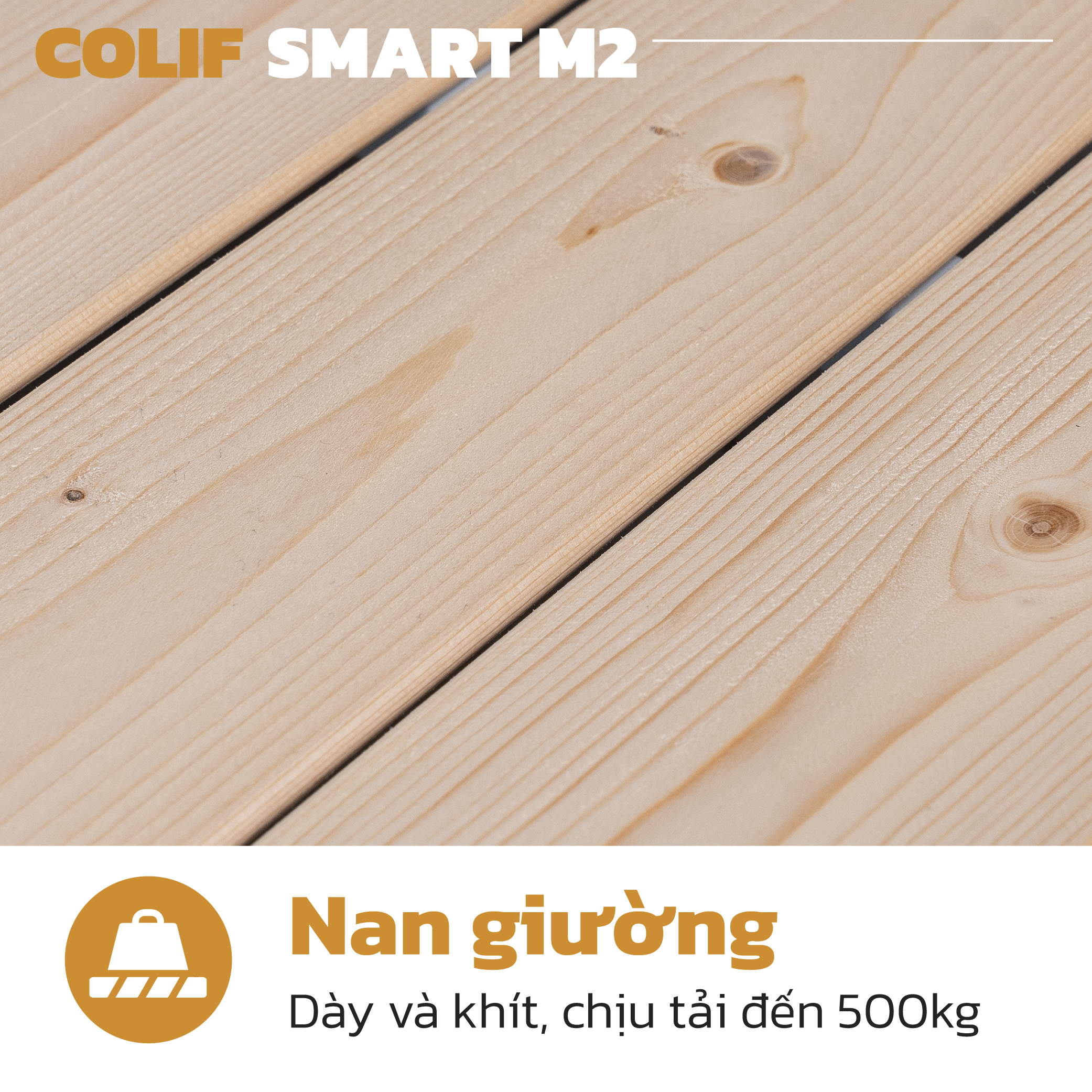 Colif Smart M2 được thiết kế với các nan giường bằng gỗ thông nguyên khối, mỗi nan có chiều rộng 10cm. Các nan giường được xếp dày và khít lại với nhau, có khả năng chịu lực lên đến 500kg.