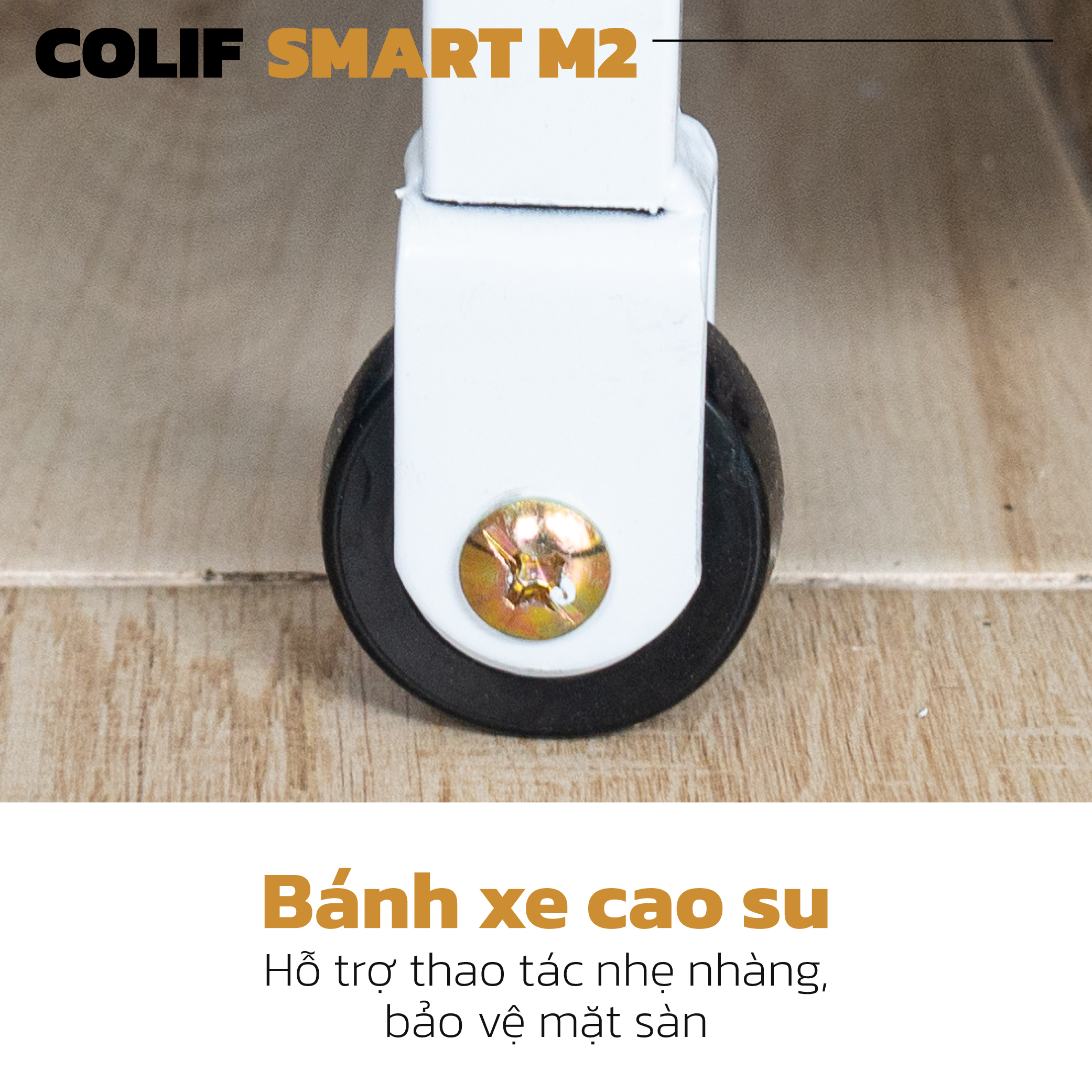 Bánh xe của Colif Smart M2 giúp việc chuyển đổi giữa sofa và giường trở nên nhẹ nhàng, ai cũng có thể thao tác dễ dàng. Được làm từ cao su cao cấp, bánh xe không chỉ hỗ trợ gấp mở linh hoạt mà còn giảm tiếng ồn và bảo vệ bề mặt sàn. Tuy nhiên, một lưu ý nhỏ là bánh xe không dùng để hỗ trợ di chuyển giường đi quanh nhà.