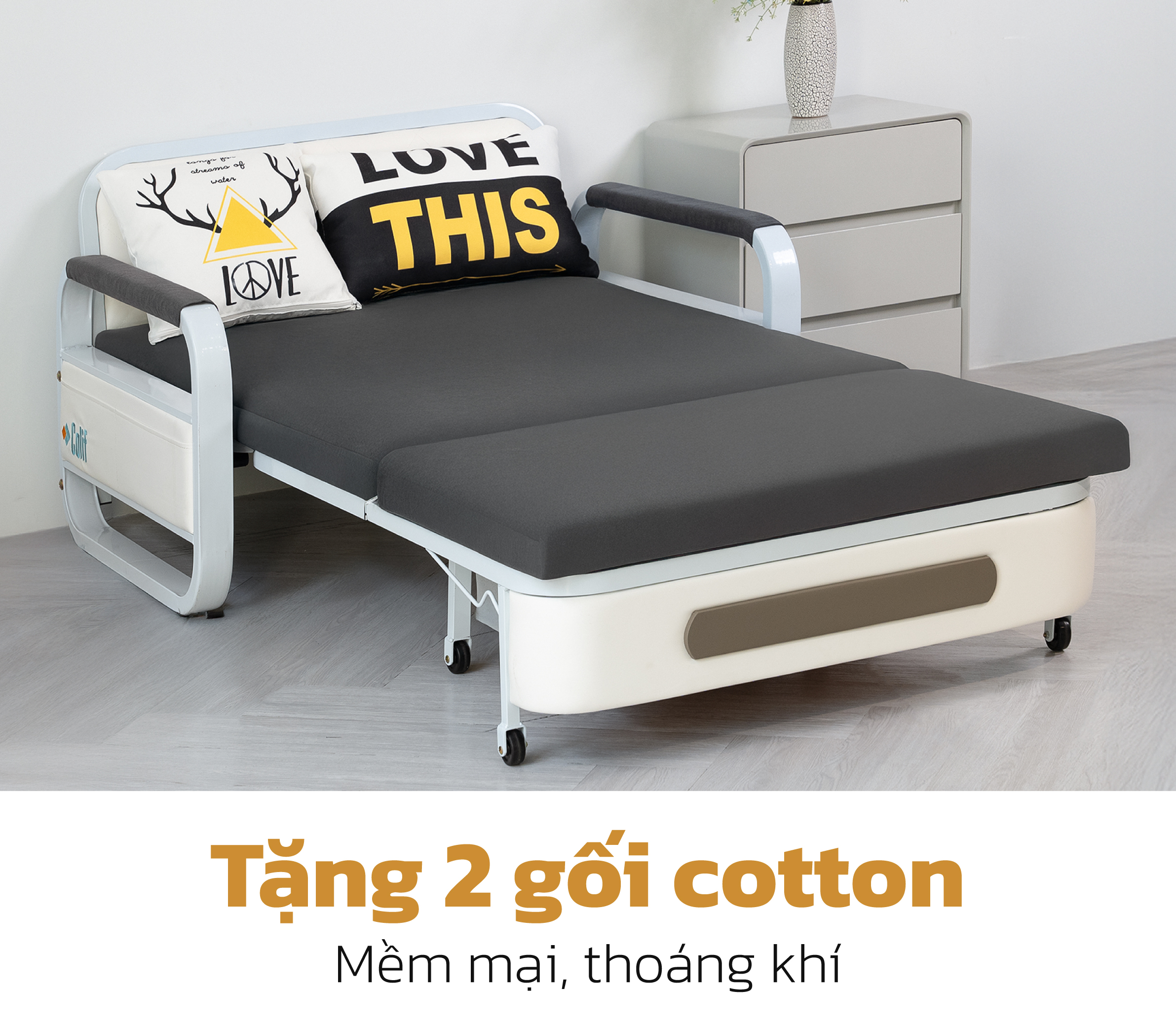 Chỉ mất 3 để chuyển đổi từ giường ngủ thành sofa và ngược lại. Ban ngày không dùng đến bạn có thể gấp gọn lại như một chiếc ghế sofa, ban đêm kéo ra là chiếc giường ngủ rộng rãi, thoải mái. Đặc biệt phù hợp cho những ai có hai con ngủ chung phòng nhưng vẫn muốn có giường riêng.
