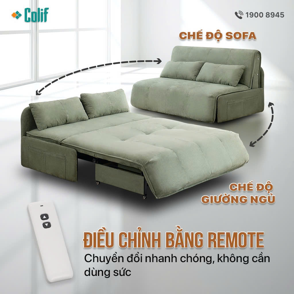 Giường sofa điện thông minh Colif Smart E1 là dòng sản phẩm được nâng cấp với nhiều cải tiến về thiết kế và trải nghiệm sử dụng. Không chỉ là một chiếc sofa thông thường, Colif Smart E1 còn mang đến giải pháp tối ưu không gian với sự kết hợp hoàn hảo giữa sofa – giường ngủ – hộc đựng đồ trong cùng một thiết kế, đặc biệt điều chỉnh bằng remote vô cùng tiện lợi.