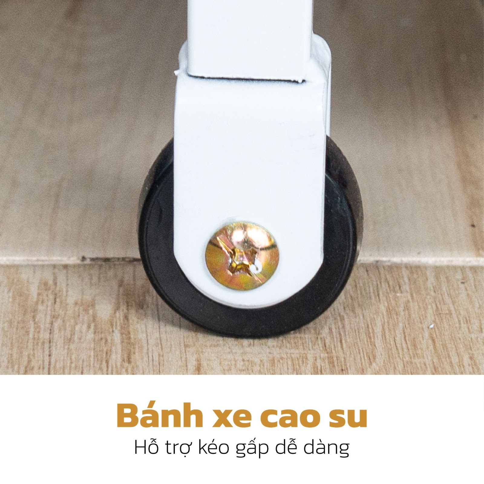 Bánh xe sử dụng chất liệu cao su. Khi muốn chuyển đổi chế độ giường sang sofa hoặc ngược lại, bánh xe sẽ hỗ trợ kéo đẩy dễ dàng hơn, giảm tiếng ồn và bảo vệ bề mặt sàn. Một lưu ý nhỏ là bánh xe không dùng để hỗ trợ di chuyển giường đi quanh nhà.
