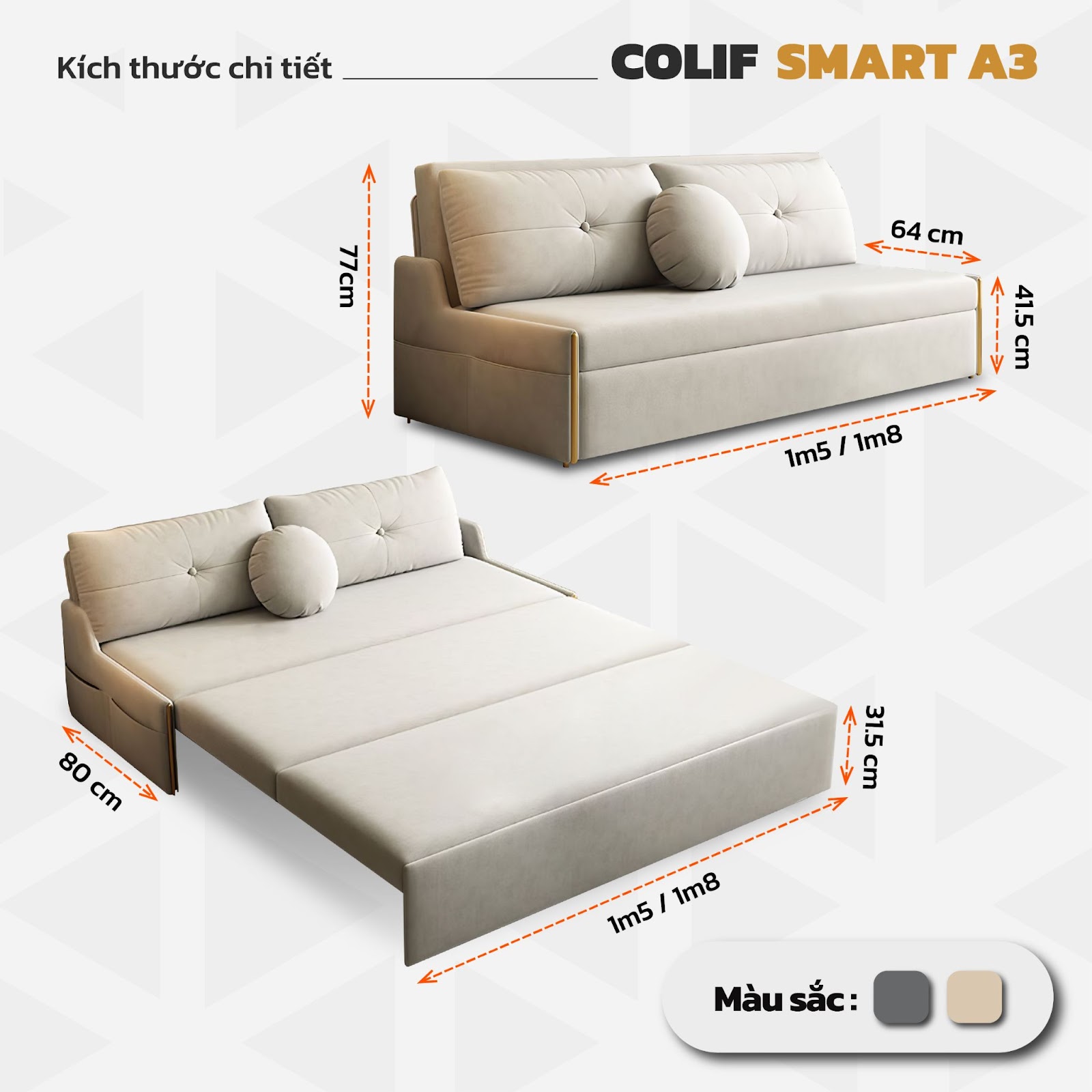 1. Cấu tạo giường sofa đa năng Colif Smart A3