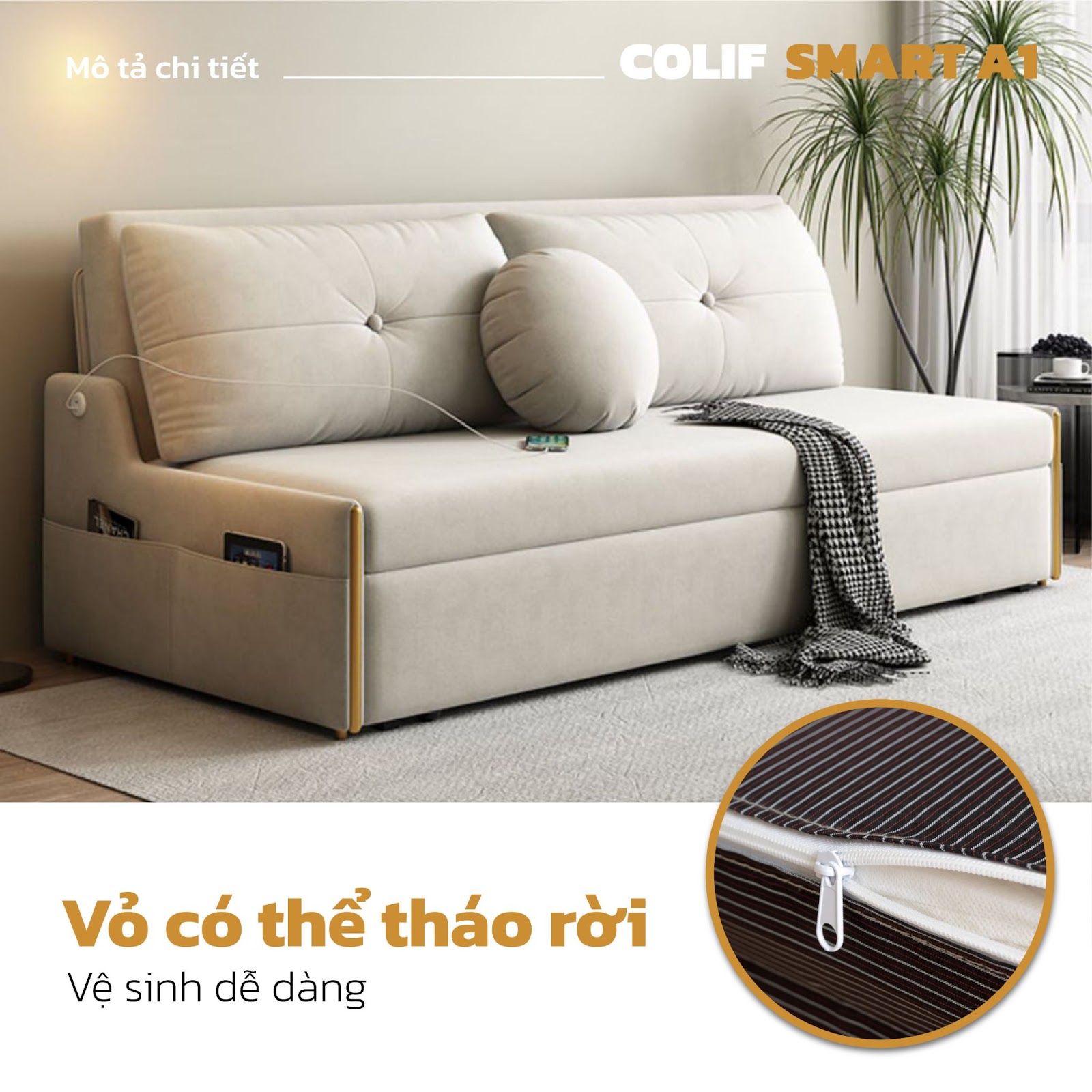 Ga giường và bao gối giường sofa đa năng Colif Smart A3 thiết kế có khóa kéo tiện lợi giúp bạn dễ dàng vệ sinh.