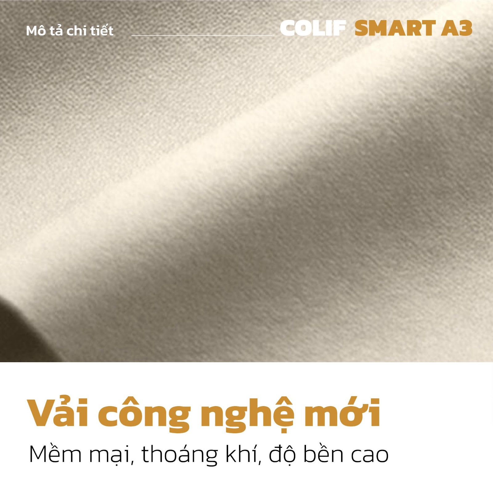 Giường sofa đa năng Colif Smart A3 sử dụng vải công nghệ mới, đây là loại vải bọc kết hợp hoàn hảo ưu điểm của cả vải nỉ và da, chất vải mướt, nhẵn mịn, dễ vệ sinh.