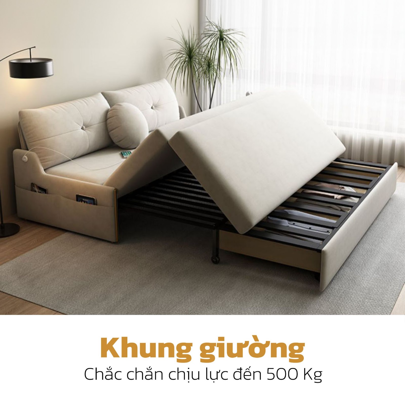 Tích hợp đa tính năng trong cùng một thiết kế duy nhất. Các thao tác chuyển đổi chế độ từ giường sang sofa và ngược lại đơn giản và nhanh chóng. Ngoài ra, sản phẩm còn có ngăn chứa đồ ẩn dưới giường rộng rãi và tiện lợi.