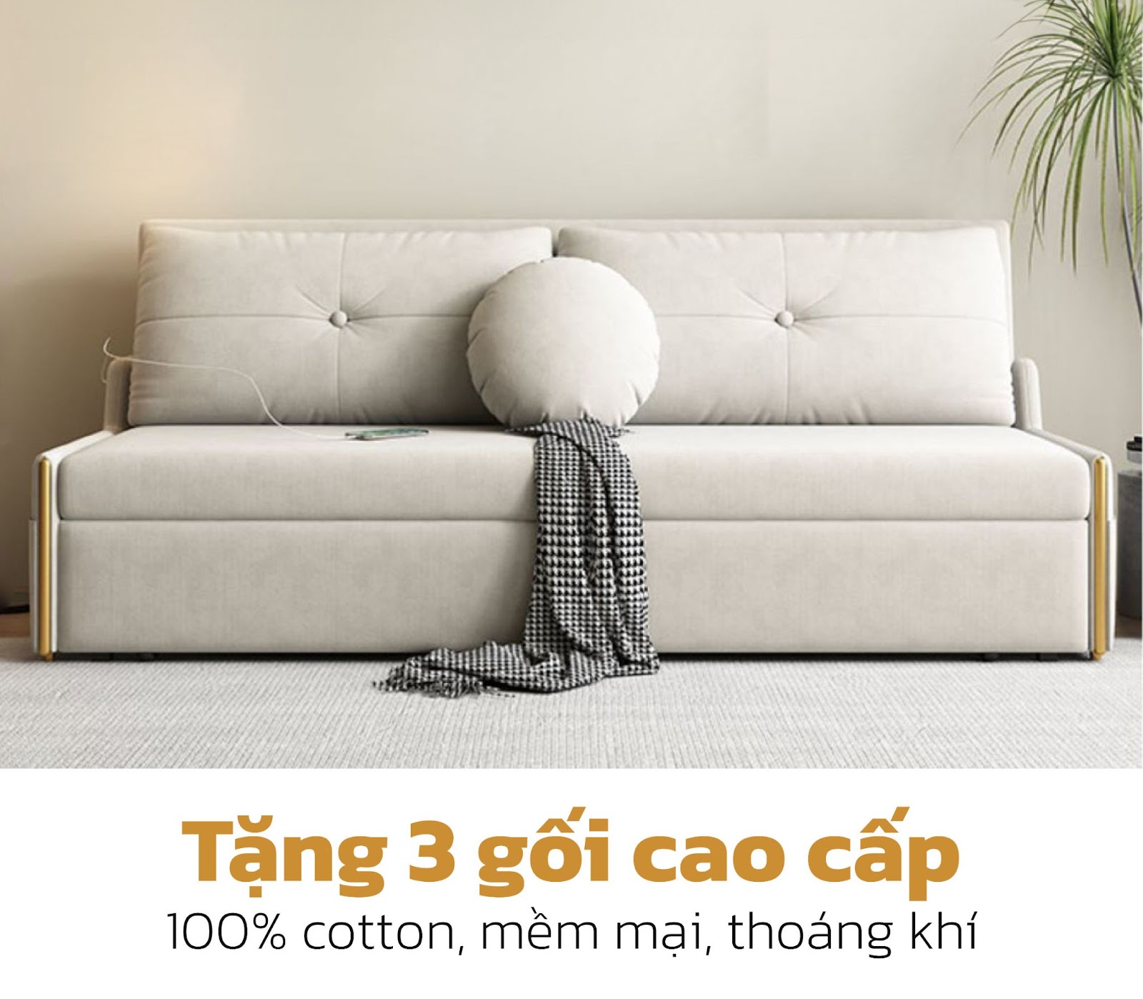 Khi mua giường sofa đa năng Colif Smart A3, bạn sẽ được tặng kèm 3 gối cotton cao cấp, bao gồm 2 gối chữ nhật lớn và một gối tròn nhỏ.