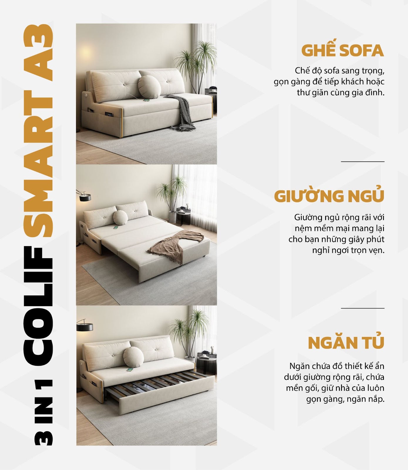2. Đặc điểm nổi bật của giường sofa da năng Colif Smart A3